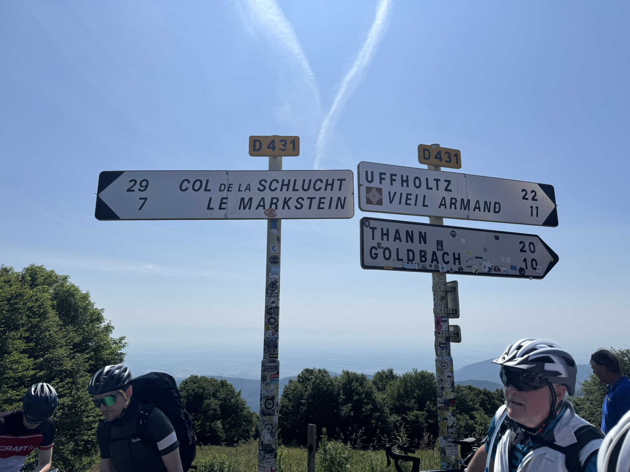 Den letzten Mohikaner haben wir in Albbruck aufgegabelt: Stefan Rimmele wartete an der Bushaltestelle wie vereinbart und dann ging es los. Die Fahrt zum Grand Ballon bei so einem fantastischen Wetter sollte dann doch zweieinhalb Stunden dauern. Vor allem die Passfahrt vorbei am Hartmannswilerkopf mit den vielen Kehren brauchte seine Zeit. Irgendwann waren wir dann auf rund 1400m angekommen.