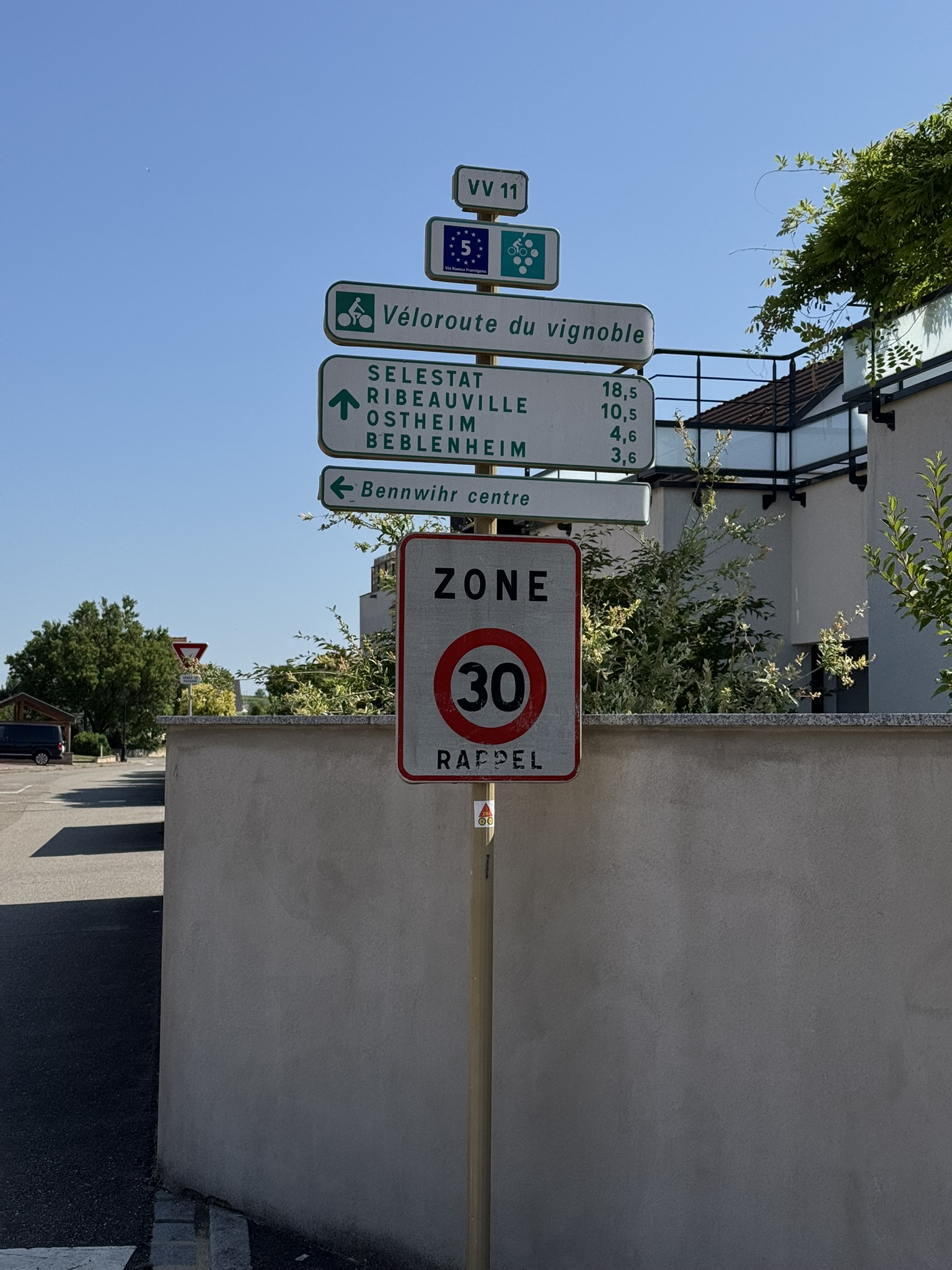 Auf dem EuroVelo5* sind es noch 18,5 Km bis Sélestat.
